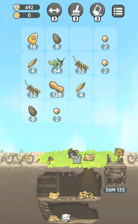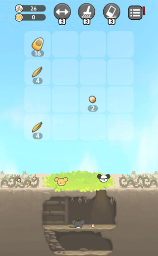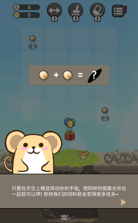 2、将格子里相同的图案合并在一起就可以让仓鼠的粮食变得很多很多