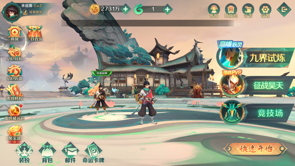 1、打开新仙魔九界游戏,在完成新手任务之后,玩家就可以前往九界进行历练了。