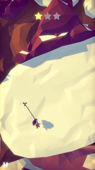 2、对于操作玩家要做的就是控制登山者到达雪山山顶,只需要点击屏幕便可以释放出钩爪到指定的地点,之后再通过各种巧妙的摇摆来一步步走出自己的路线完成关卡。