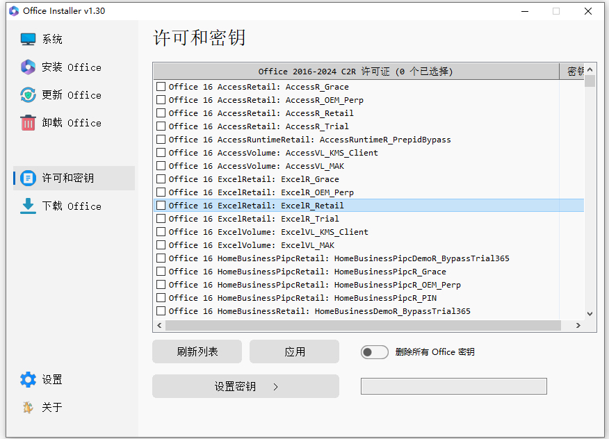 删除了许可证 “删除密钥” - 安装旧 Office 时使用的密钥将从系统中删除。