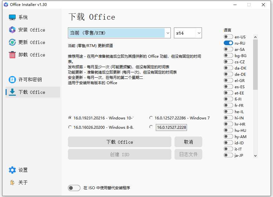 6、支持下载office,包括零售、企业长期版等各种版本,以及各种语言;