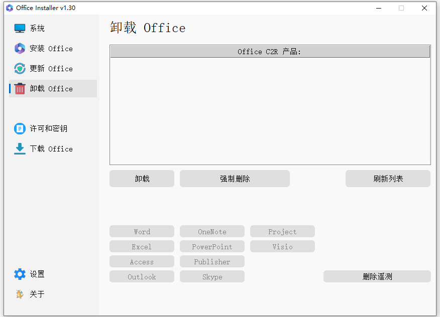 4、支持卸载office,包括卸载、强制删除,单独删除;