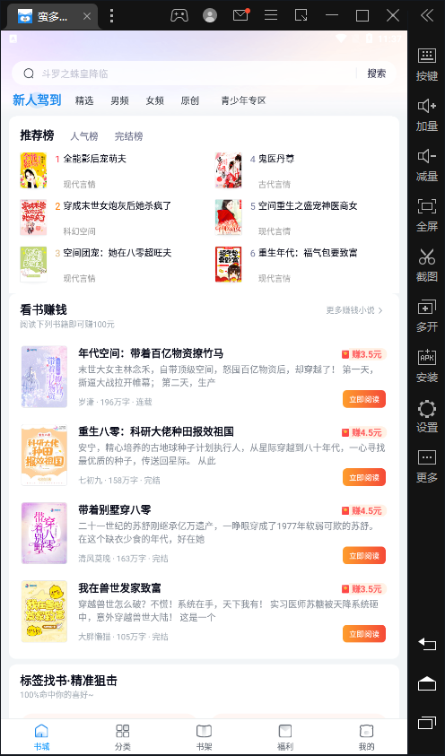 蛮多小说电脑版是一款运行在安卓模拟器上的小说阅读软件,提供了海量的免费网络小说资源,涵盖现代言情、玄幻、快穿、宫斗等多种题材,能满足不同读者的需求。软件不仅有贴心的阅读辅助功能,比如夜间模式、自动翻页和个性化的背景设置,还推出了现金书单活动,完成任务后可以领取红包奖励。此外,软件还有丰富的正版图书库、精美排版以及强大的搜索功能,支持听书和多种互动方式。