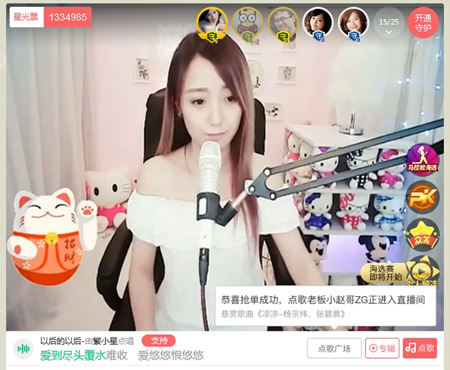 3、若你被点歌用户选中,则表示抢单成功,等待点歌用户进入直播间即可开始服务.