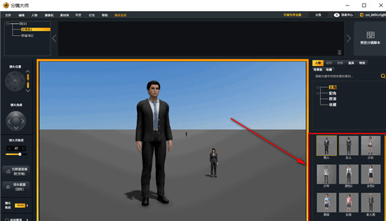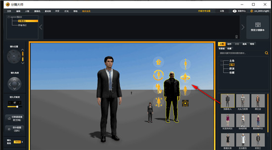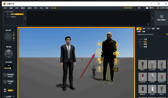 6、场景创建完成之后在软件右侧窗口,您可以按需选择添加人物、配角、群演等元素。