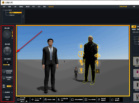9、在软件左侧您可以控制摄像机的走位以及显示方式。