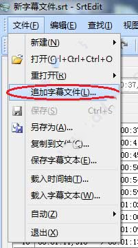 6、在主菜单“文件”中,选择“追加字幕文件”,可打开文件对话框并将选定的一个文件打开并追加到当前正在编辑的文件后面。