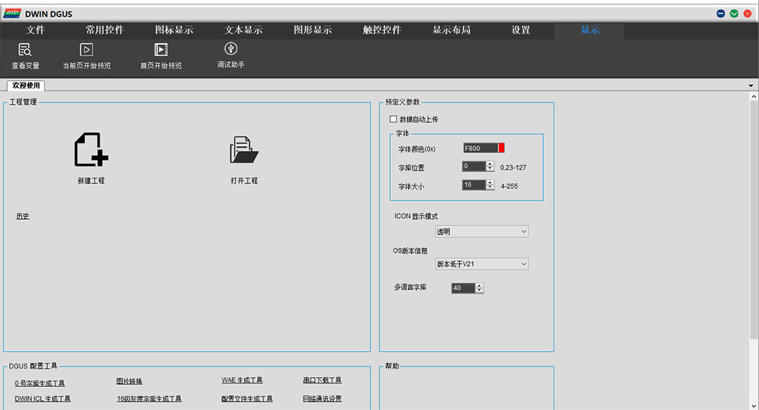 DUGS Tools 包含DUGS 屏使用需要的0号字库制作工具和 ICON 制作工具、图片转换、串口下载,点击链接直接调用相关工具进行0号字库配置及ICON文件制作。