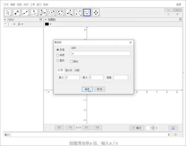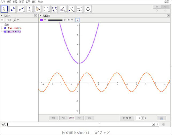 不同视区提供各自适用的工具列,上面包含了特定工具、指令,以及内建函数与运算子,让您可以运用不同表征的数学物件,来创建动态结构。