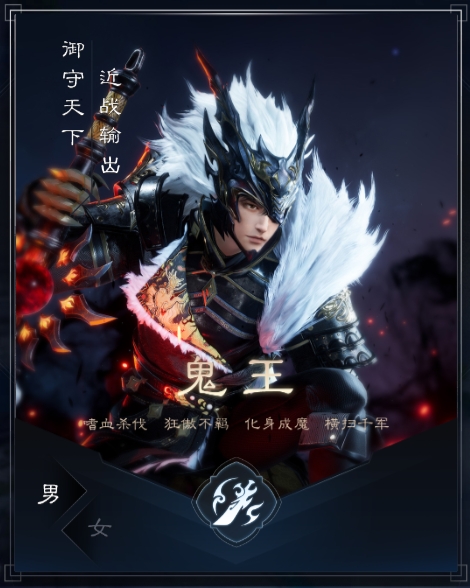 2、鬼王:分为煞鬼王与罡鬼王两个流派。煞鬼王高爆发输出,技能可在战斗中打出高额伤害;罡鬼王偏向防御和辅助,能抗能拉仇恨,为团队提供保护 。