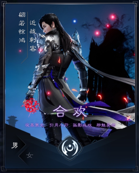 3、合欢:机动性强的刺客职业,擅长瞬间爆发高伤害,可在瞬间给予敌人致命一击。