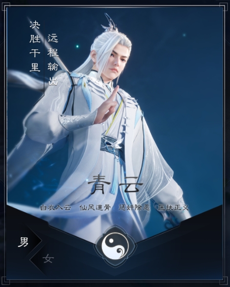 1、青云:以剑为器,操纵飞剑进行远程攻击,对单体或群体目标都有较强打击力,可驾驭雷电造成大范围伤害,还具备一定控制力。