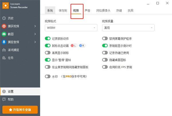 答:是的,录屏是免费的,但有一定限制。您可以在程序升级页面上查看 PRO 功能的完整列表