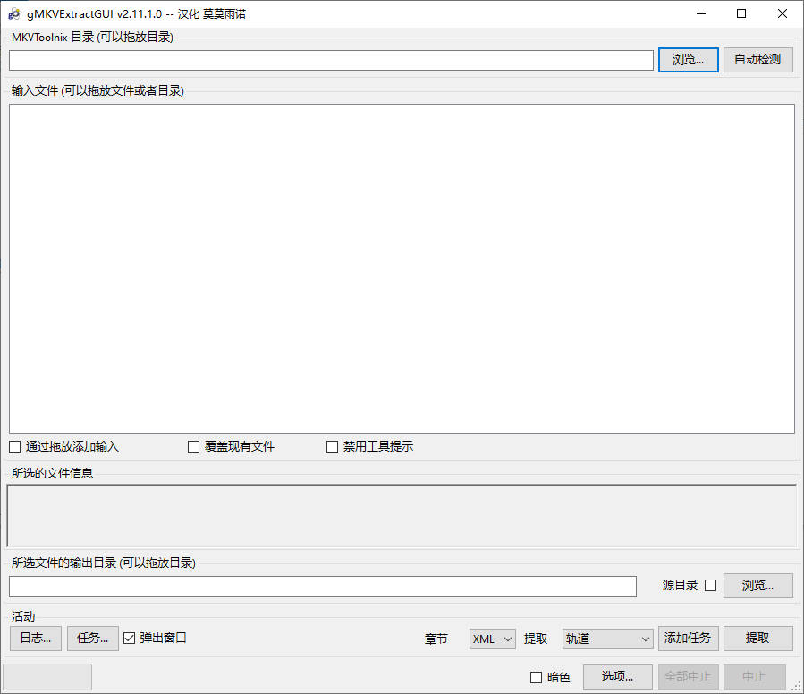 2、打开gMKVExtractGUI绿色汉化版,软件启动如图;