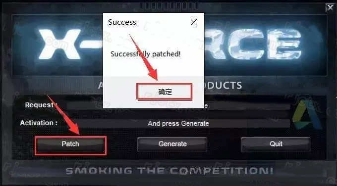 14、这时以管理员身份运行软件包中的“xf-adesk20.exe”文件打开revit2020注册机,首先一定要先点击patch,弹出“successfully patched”才能进行下一步;