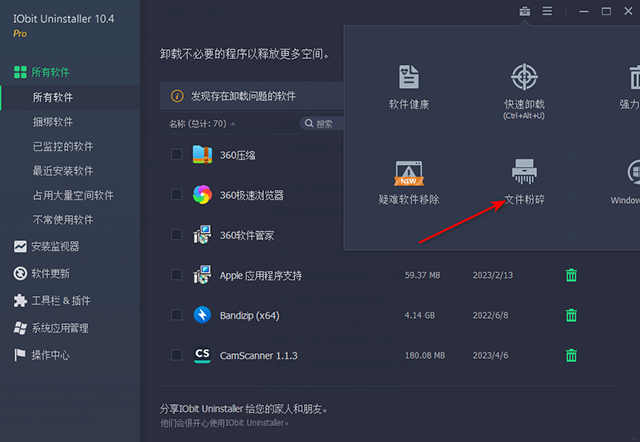 iobit uninstaller卸载清除工具粉碎文件的通用教程: