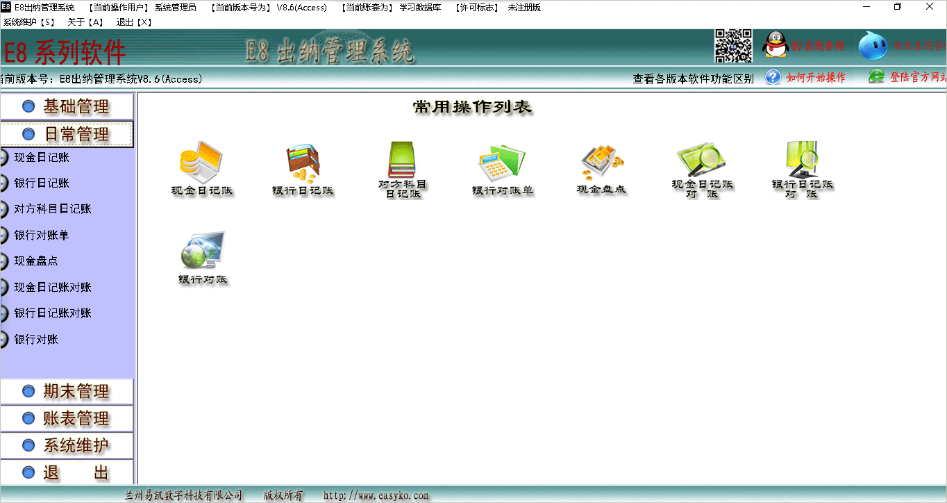 e8出纳管理软件就是这样一款专为中小企事业单位设计的高效工具。它以全新的理念研发,操作简单,功能强大,能自动处理账簿、生成报表,并支持与Excel的数据导出和打印,极大提升了工作效率。