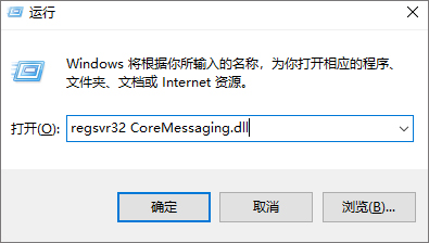 4、最后点击开始菜单-->运行-->输入regsvr32 CoreMessaging.dll后,回车即可解决错误提示。