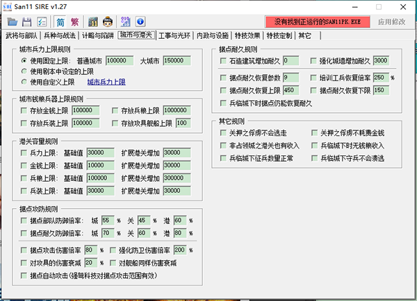 4、除此之外,修改城市的兵力上限,扩大古代战争的规模,提供修改据点的能力,让三国志11变为塔防游戏