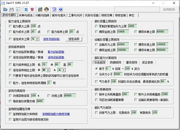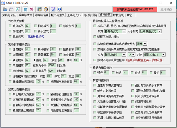2、如果你是战法爱好者,那你可以使用sire定制战法的成功率,以及各种战法的成功规则,乃至基础伤害与伤害系数等
