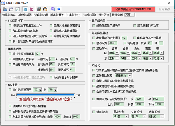 1、可以修改武将能力及能力成长,适性及最大适性,部队的运输能力,带兵上限等