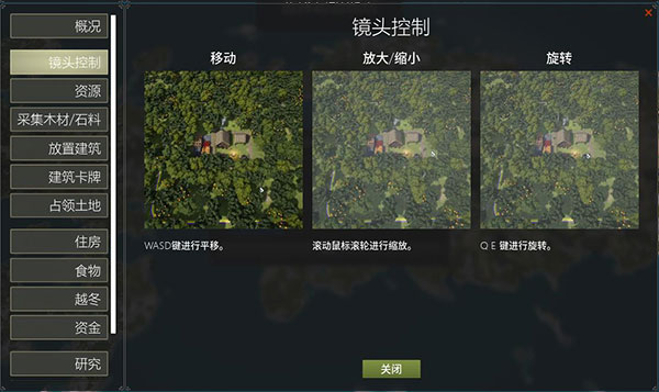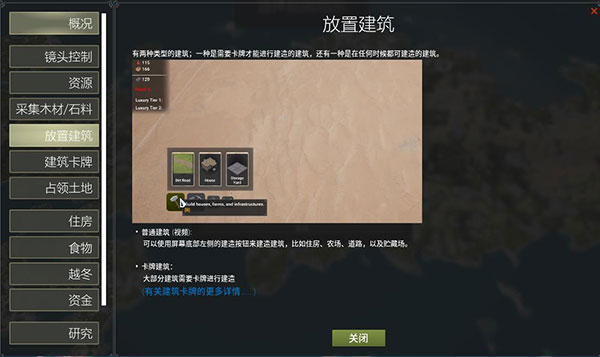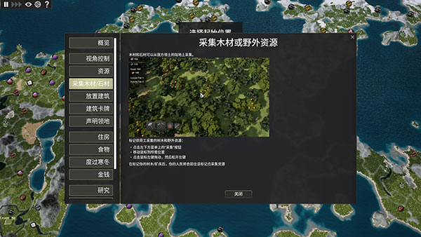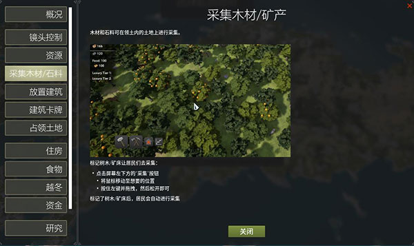 如下图所示,如何采集木材或野外资源、如何放置建筑等等;