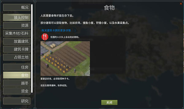 部分建筑可以获取食物,比如水果采集点,狩猎小屋,捕鱼小屋,以及农场。