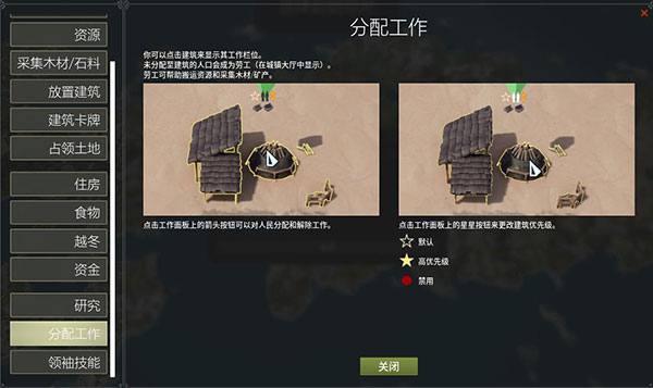 点击工作面板上的星星按钮来更改建筑优先级。
