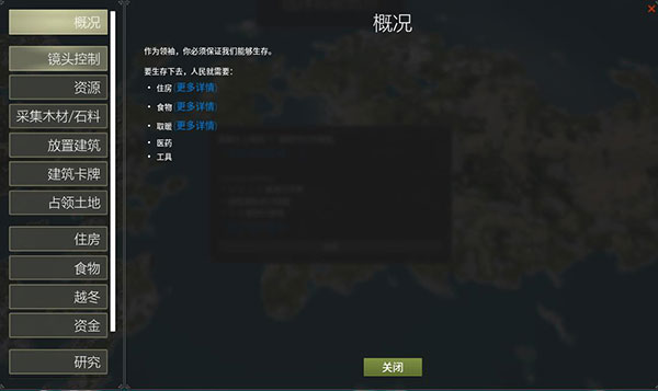 游戏玩法很简单,玩家的任务就是带领你的人民生存下去,生存条件就是住房、食物、取暖、医药、工具等;