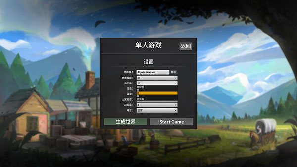 回到游戏主界面,现在单人或双人游戏,这里以单人游戏为例子,选择好游戏地图、山区等然后生成世界;