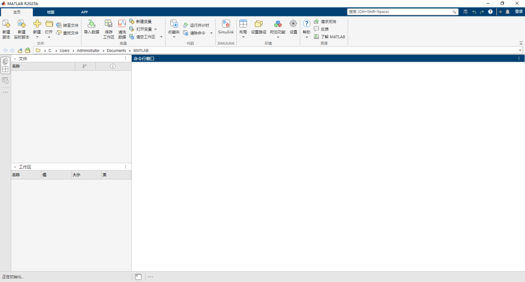 17、MATLAB R2025b安装激活完毕,运行界面如下。