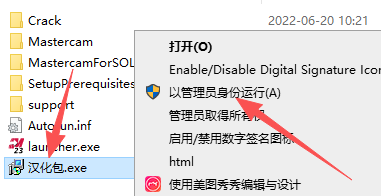 18、打开安装包解压后的文件夹,鼠标右击【汉化包】选择【以管理员身份运行】。