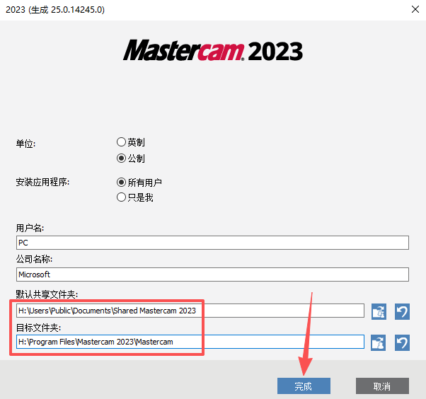 6、修改路径地址中的首字符C可更改对应安装位置(如:将C改为D软件将安装到D盘),点击【完成】。