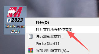 24、鼠标右击桌面【Mastercam2023】图标选择【打开文件所在的位置】。