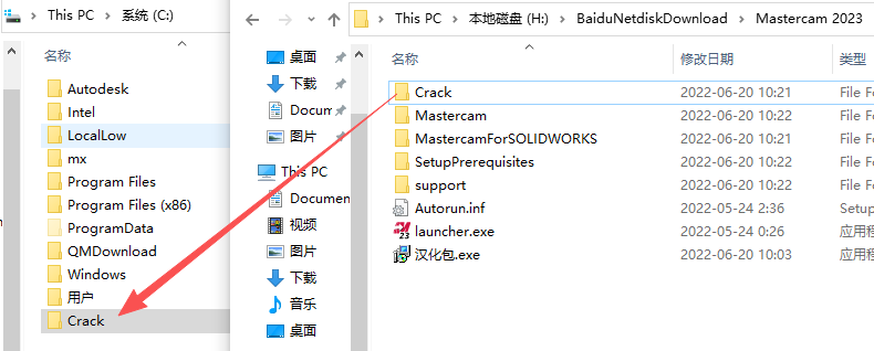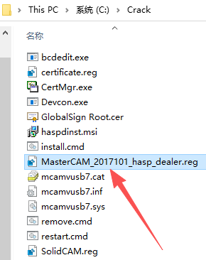 12、打开C盘根目录中的【Crack】文件夹,双击运行【Mastercam 2017...】文件。