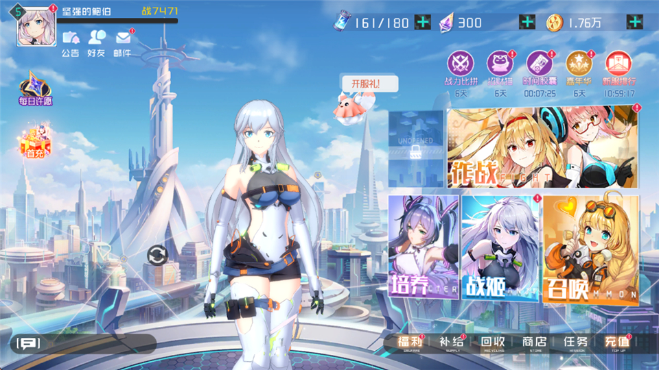 1、上线玩疯狂送抽卡,极品战姬抽不停。