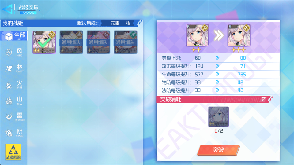 3、战姬突破。