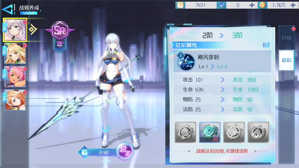 2、战姬进阶。