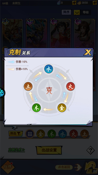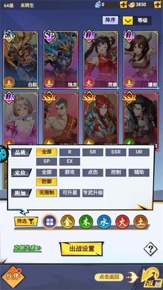 5、伙伴拥有五行属性(金木水火土),不同属性的伙伴有着不同的技能特征:金系倾向属性转换、木系倾向减益状态、水系倾向控制、火系倾向范围爆发、土系倾向增益状态。