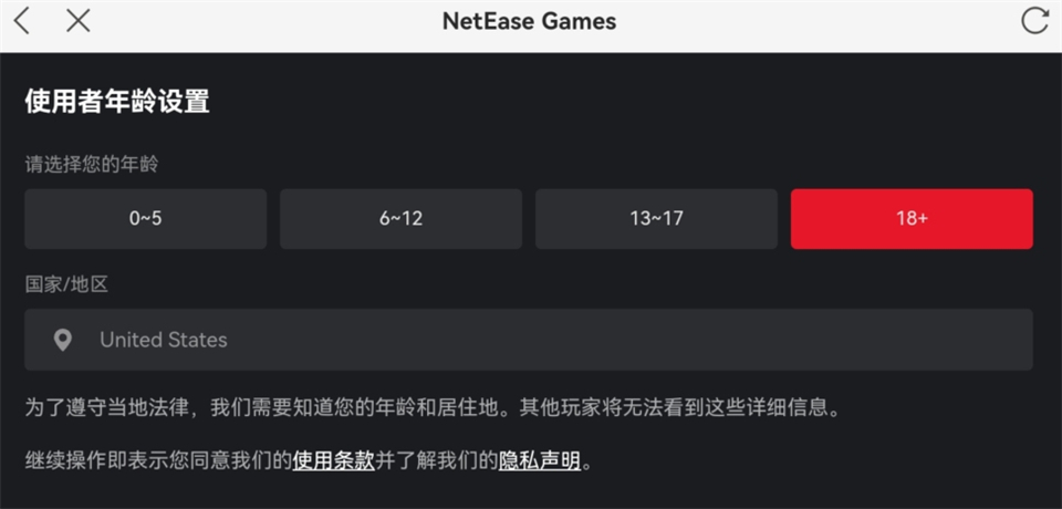 6、选择你的年龄和地区,推荐选择18+,地区无所谓,默认的也行。