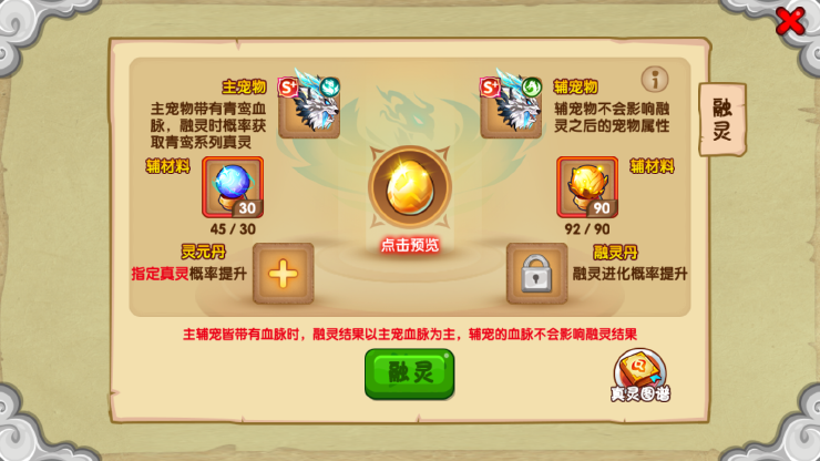 注意:不建议在合s虎的时候带上三个天赋,因为我们在和s+虎的时候保底只有两天赋。也就是说有可能在三个里面随机掉一个,那么这时候可能会要重新做另一个s+白虎。但如果合出来了三天赋s虎,也可以先把它合到s+白虎,我们看看剩下一些什么天赋,再去做第二只s虎,也是可以的。
