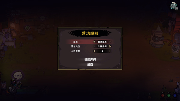 1、打开失落城堡2中文版,进入游戏后来到中间的篝火,按E点击创建房间;