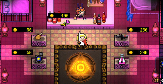 神秘的兔女郎字母姐所经营的道具商店武器、宝物、道具都会随机进行陈列贩卖,用获得的金币来消费既可进行购买了。