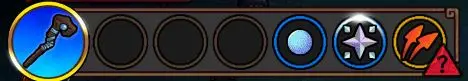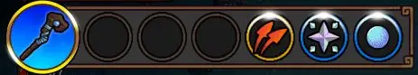如图所示的法杖,我们每次施法时,会先将【多重施法】的效果施加在右边的法术上,之后我们释放2个【奥数新星】,在法杖自身0.X秒的施法间隔后,我们释放2个【魔法弹】。之后法杖结算停止,【奥数新星】会持续释放【魔法弹】直到持续时间结束。这就是基础的法术编程过程。