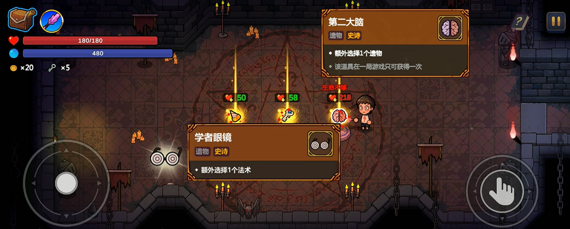 另外,生命值也可以作为资源,购买游戏内的部分特殊遗物:【血色遗物】。在不掉血战胜关底首领后会开启【血色遗物房】,其中的血色遗物只可用生命上限购买。而部分强力史诗遗物例如【第二大脑】【学者眼镜】在正常遗物房间中获得概率较低,更推荐在生命上限足够且拥有一定战力时,尝试无伤战胜首领前往血色遗物房碰碰运气。
