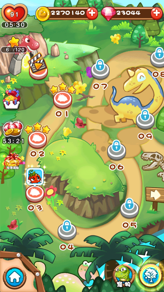 2、引入元素克制系统,如水属性克制熔岩恐龙,电属性对飞行系特效,需合理搭配蔬菜阵容。
