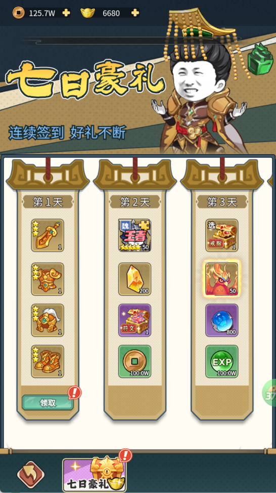 连续签到领极品装备、武将碎片、海量经验,长线积累核心物资。