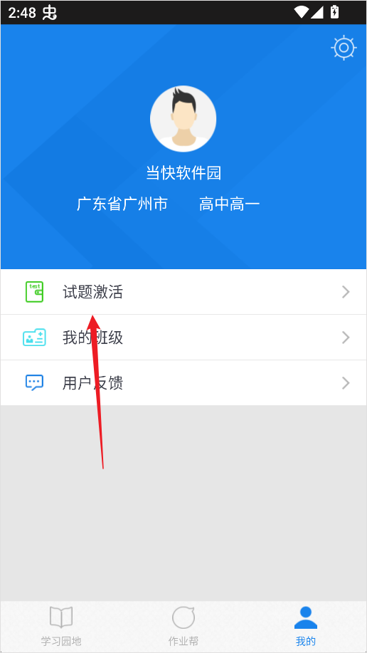 2、在个人中心页面,选择【试题激活】选项;