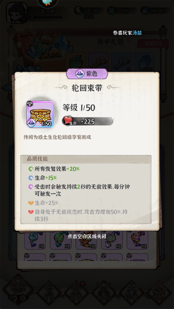 (3)受击时会触发持续2秒的无敌效果,每分钟可触发一次