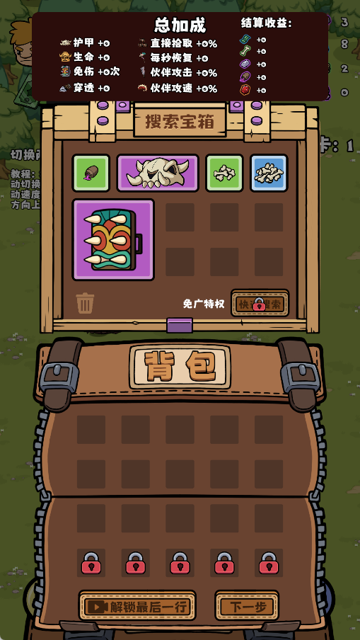 3、背包扩容:背包从20格扩容至30格,局外可以通过宝箱获得更多收益,局内也可通过宝箱获得更多属性增益。